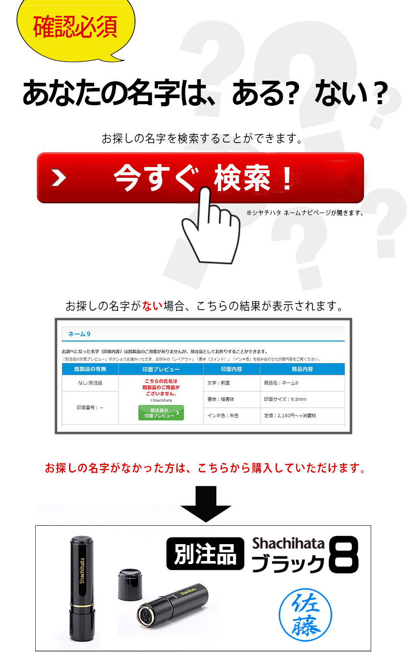 【シヤチハタ】ブラック8既製品ネーム
