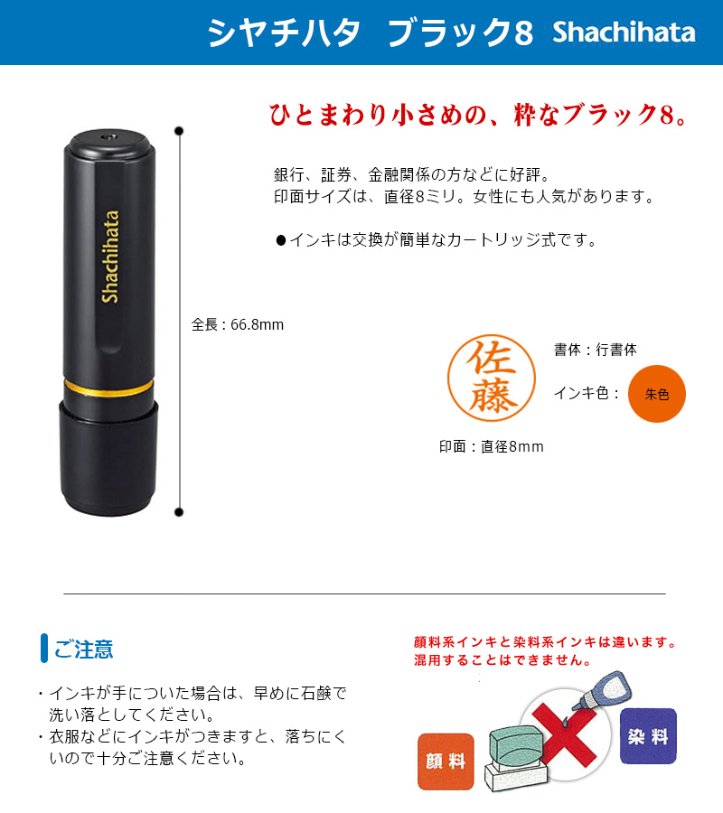 【シヤチハタ】ブラック8 (印面サイズ:直径8mm) データ入稿タイプはこちら |