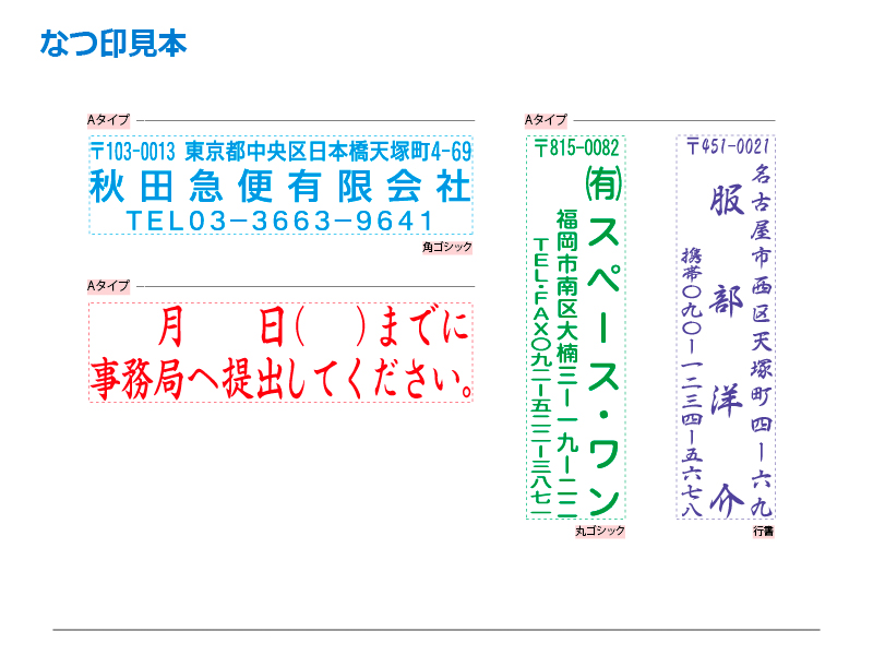 テキスト入稿タイプ(Aタイプ)印面サイズ