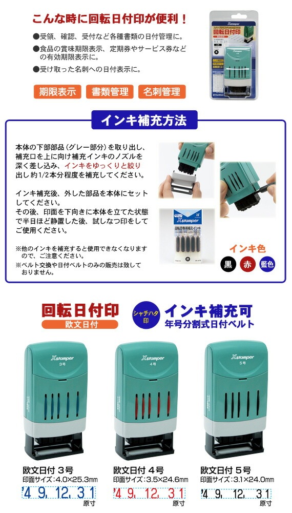 Xスタンパー 回転日付印 欧文日付 (補充インキ2本付)3号(05P29Jul16)