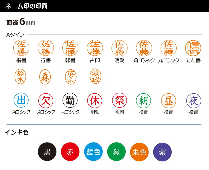 【シヤチハタ】ネーム6 (印面サイズ:6mm丸)ネーム印 別注品(Aタイプ) 短柄・長柄[オーダーメイドスタンプ/浸透印/ハンコ/判子/シャチハタ印/ビジネススタンプ]