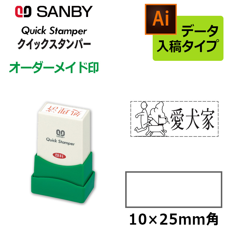 【サンビー】クイックスタンパー 長型 1025号 (印面サイズ:10×25mm)データ入稿タイプ(Bタイプ) QA-1025B