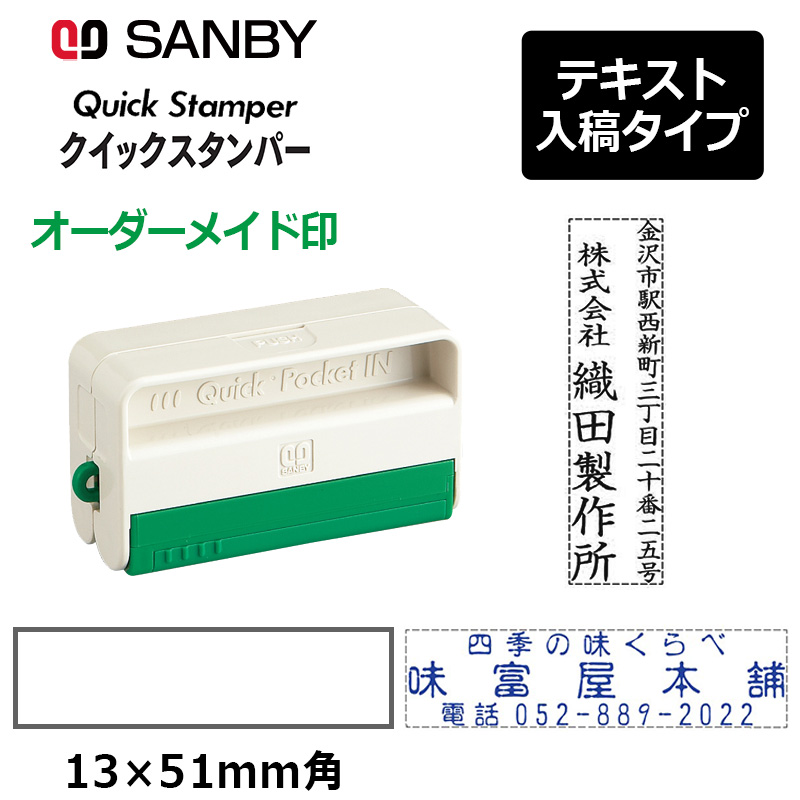 【サンビー】クイックスタンパー クイックポケットイン 1351号 (印面サイズ:13×51mm) テキスト入稿タイプはこちら |
